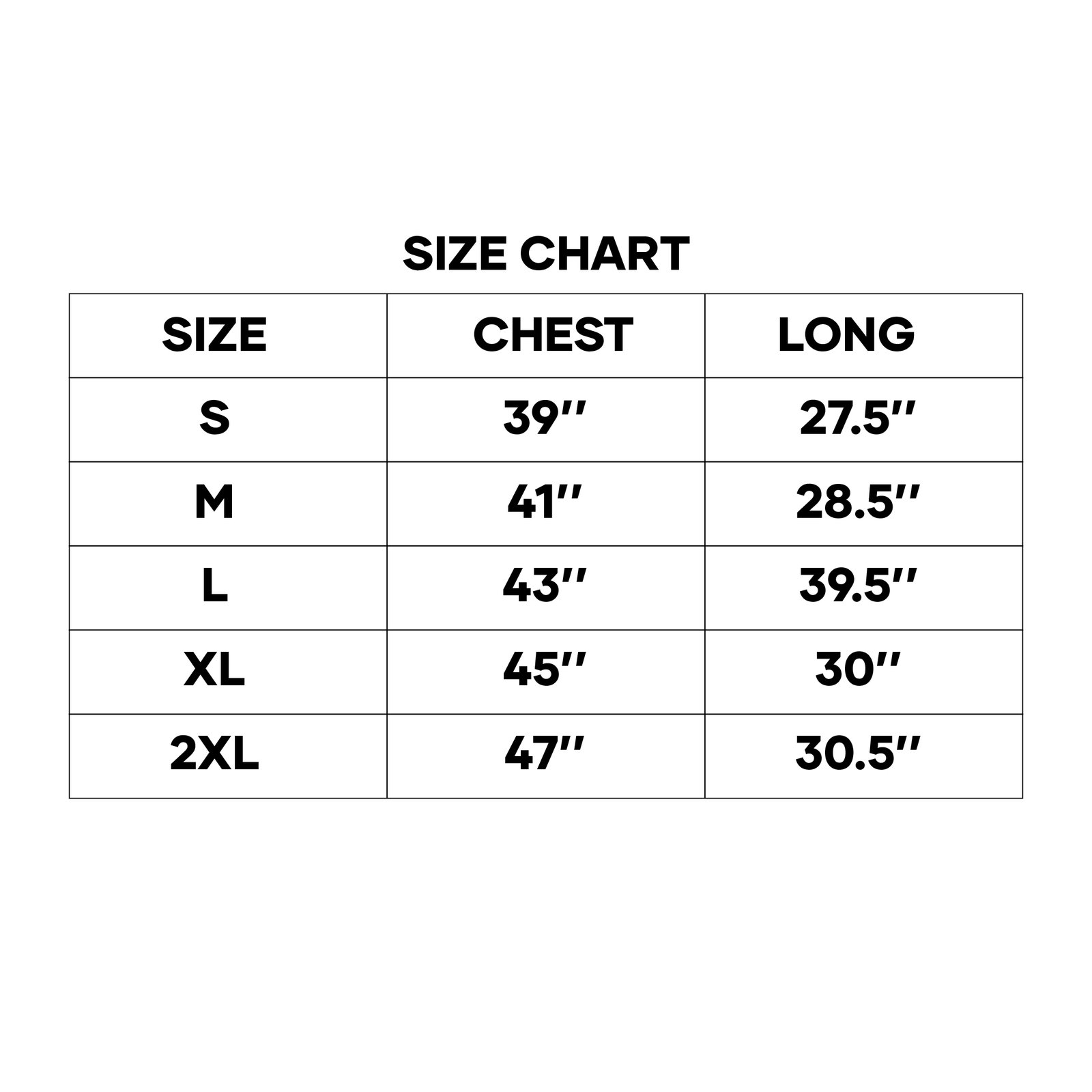 S, M, L, XL, 2XL