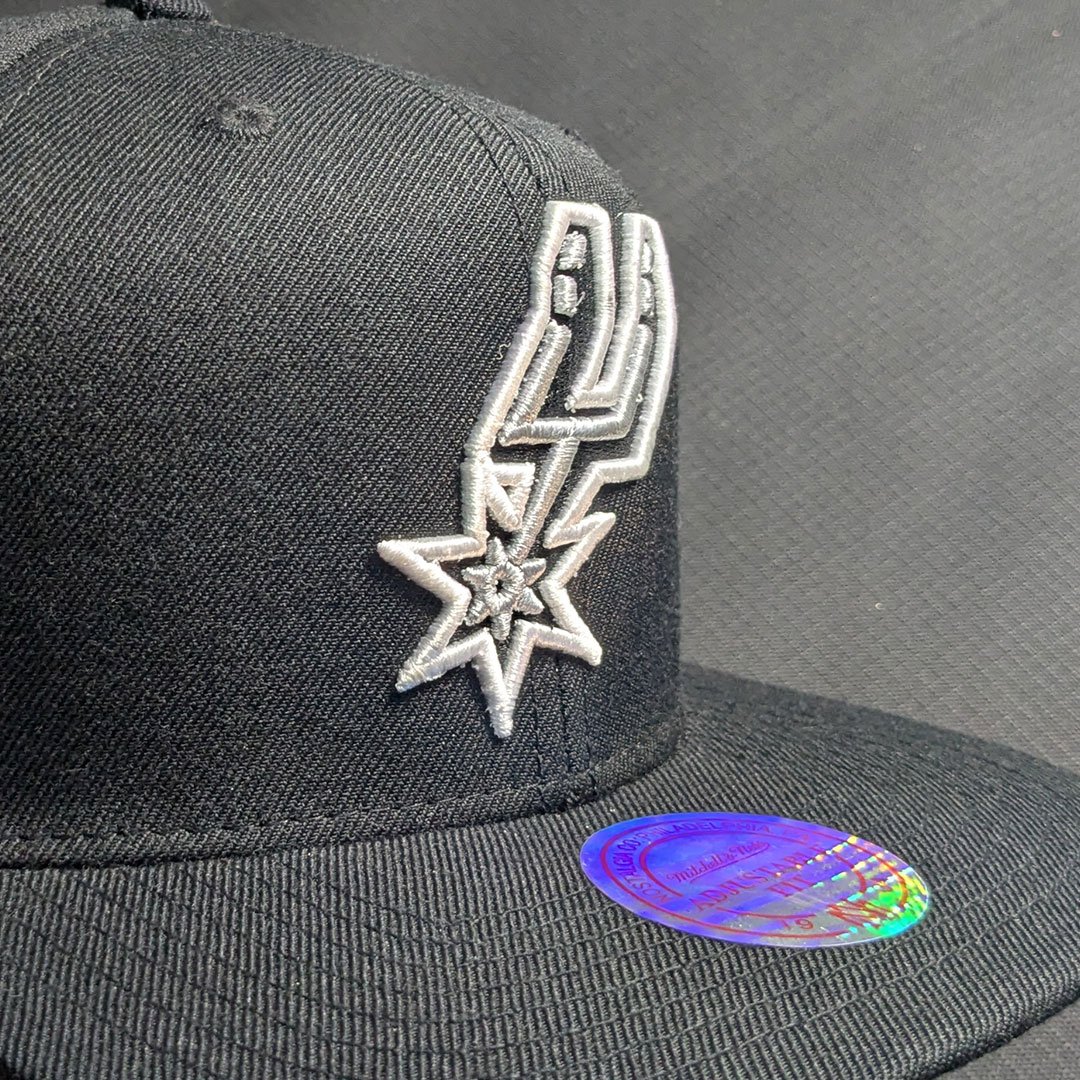 Showcase your Spurs pride with timeless style. This San Antonio Spurs snapback by Mitchell & Ness features the iconic silver and white “Spurs” spur logo embroidered on a clean, all-black crown. It’s a versatile staple for any basketball fan, offering a sleek look that transitions easily from the arena to the streets.